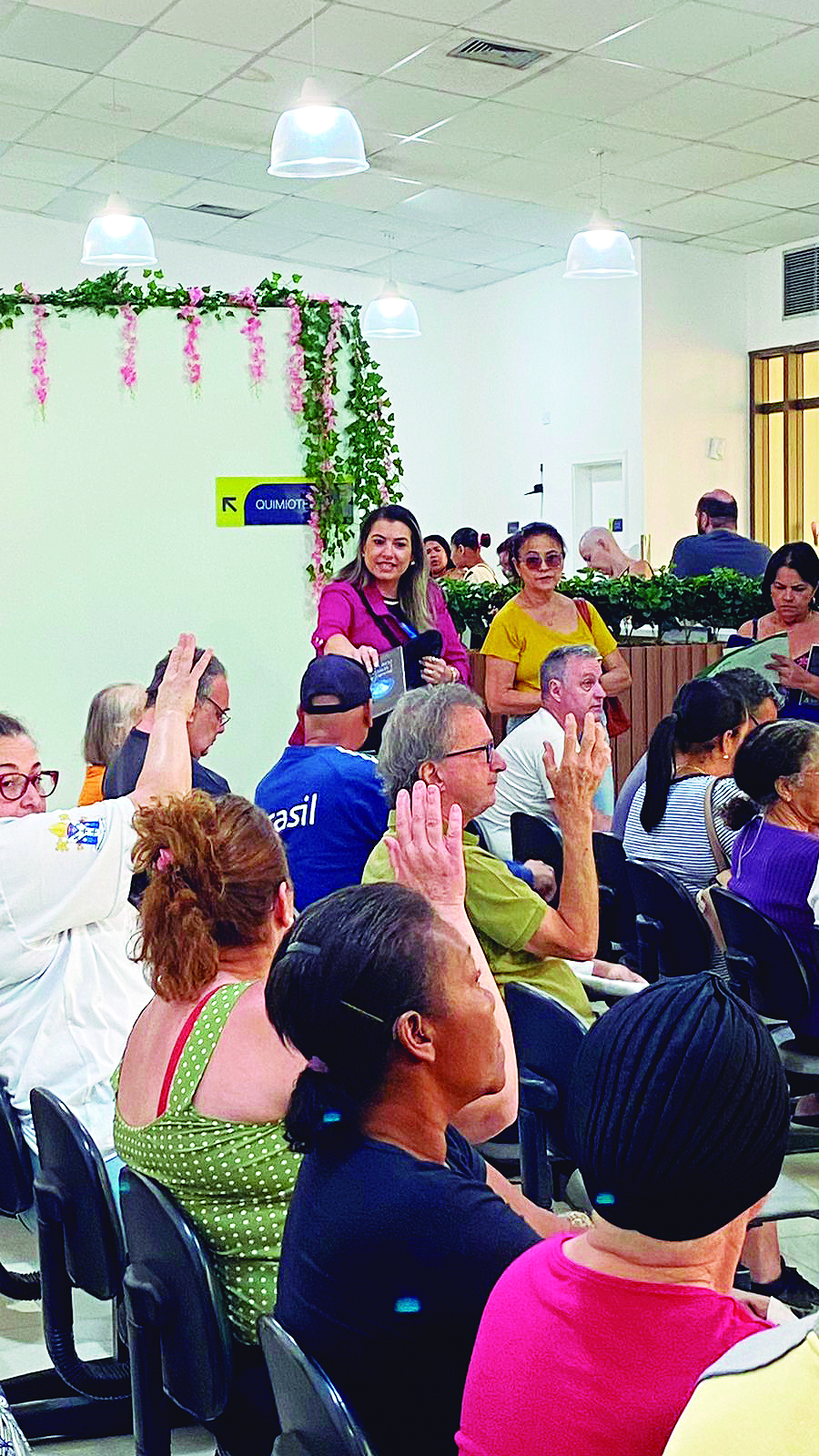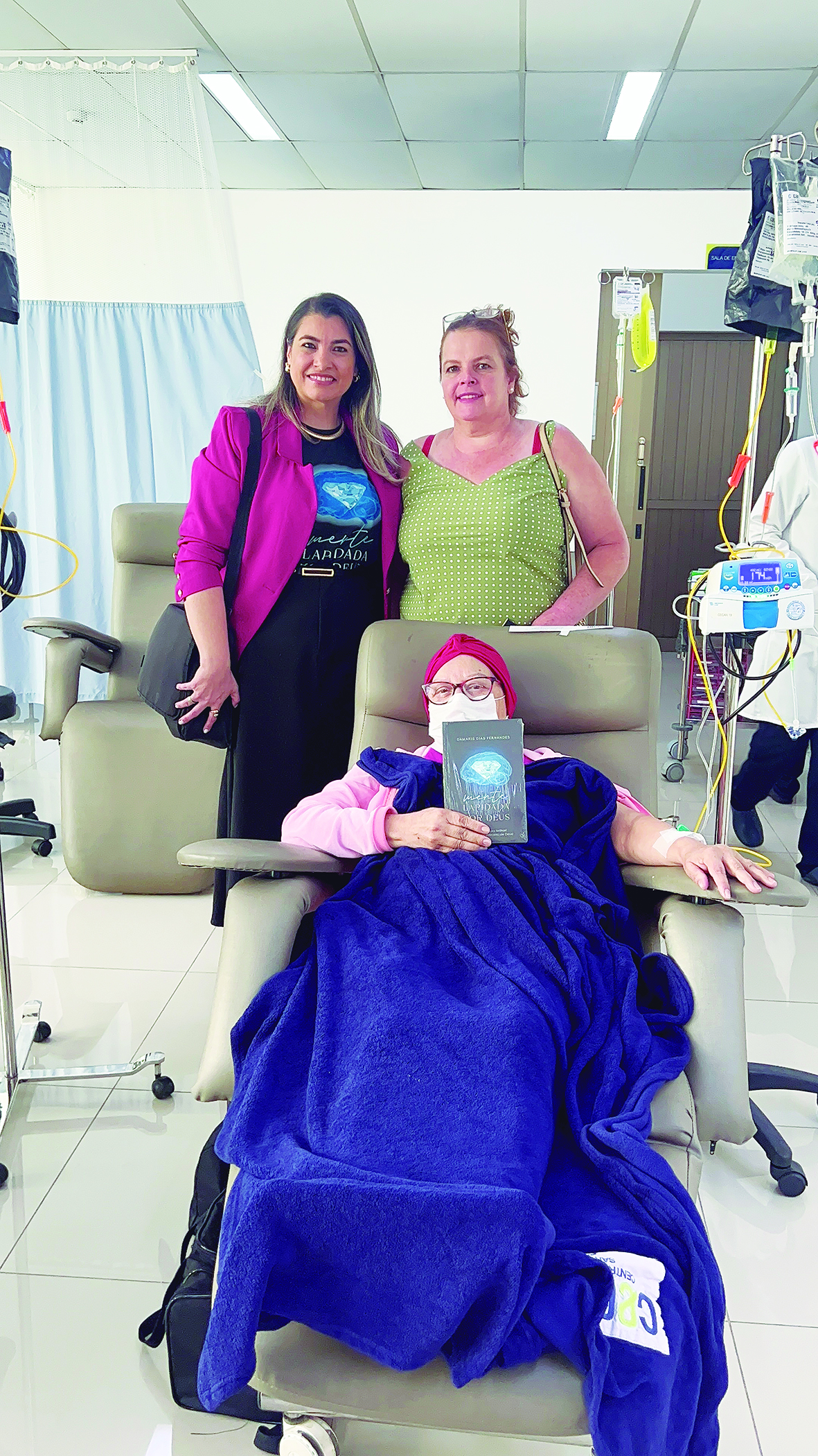 Pela terceira vez, a pastora Damaris Dias Fernandes distribui exemplares da obra “Mente lapidada por Deus” no Centro de Oncologia da Santa Casa