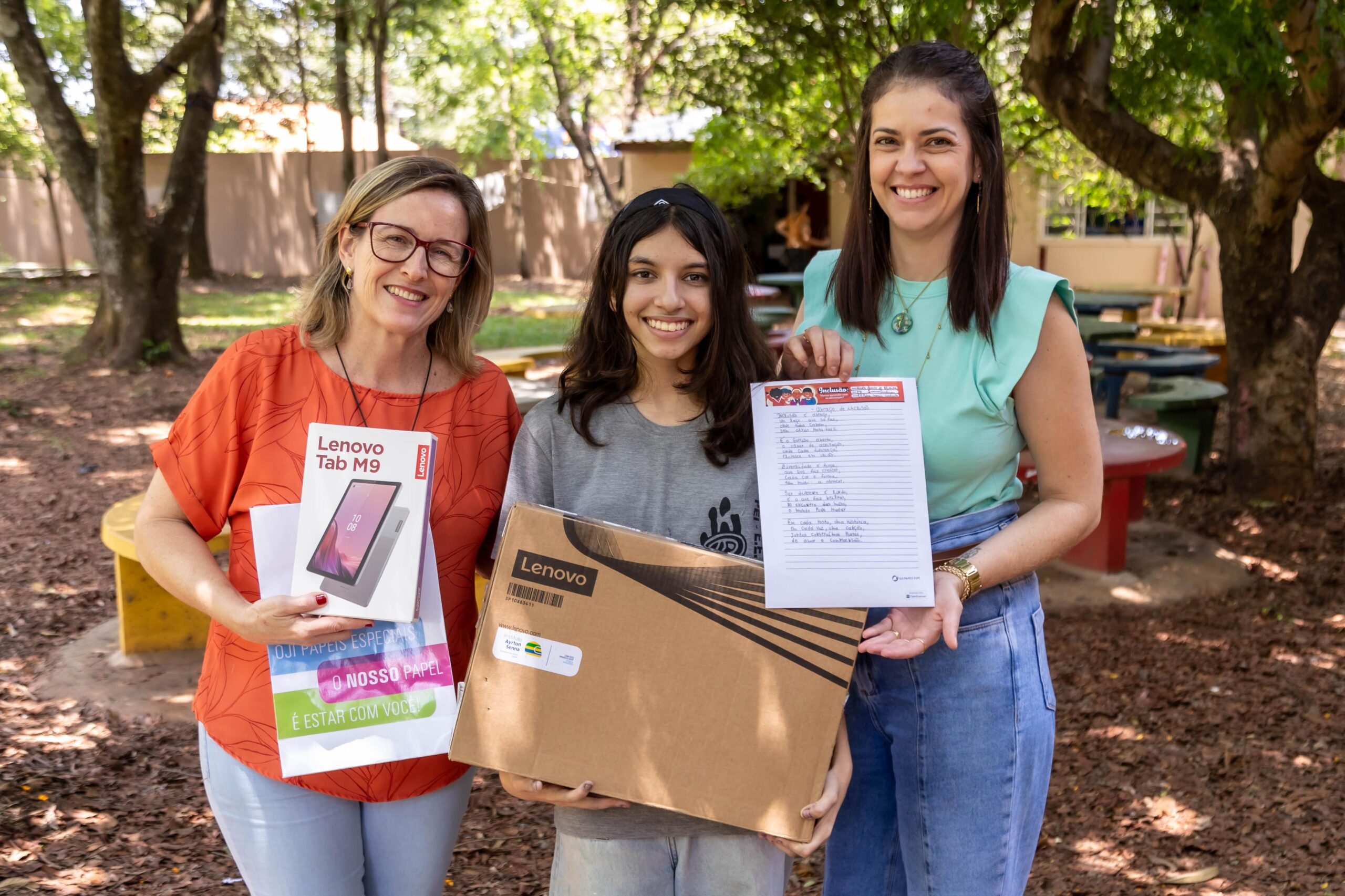 Premiação – Os vencedores da categoria redação, do 6º ao 9º ano, foram premiados com notebooks, enquanto os campeões da categoria Desenho receberam tablets. Em reconhecimento ao trabalho e dedicação, os professores responsáveis pelos projetos vencedores também ganharam tablets.