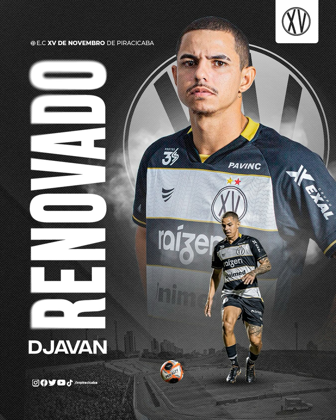 O volante Djavan, atleta de forte obediência tática e que agrada ao técnico Moisés Egert, renovou seu contrato e seguirá defendendo o alvinegro na próxima temporada. Experiente, o jogador tem a confiança da comissão técnica e deve ganhar ainda mais espaço em 2026.