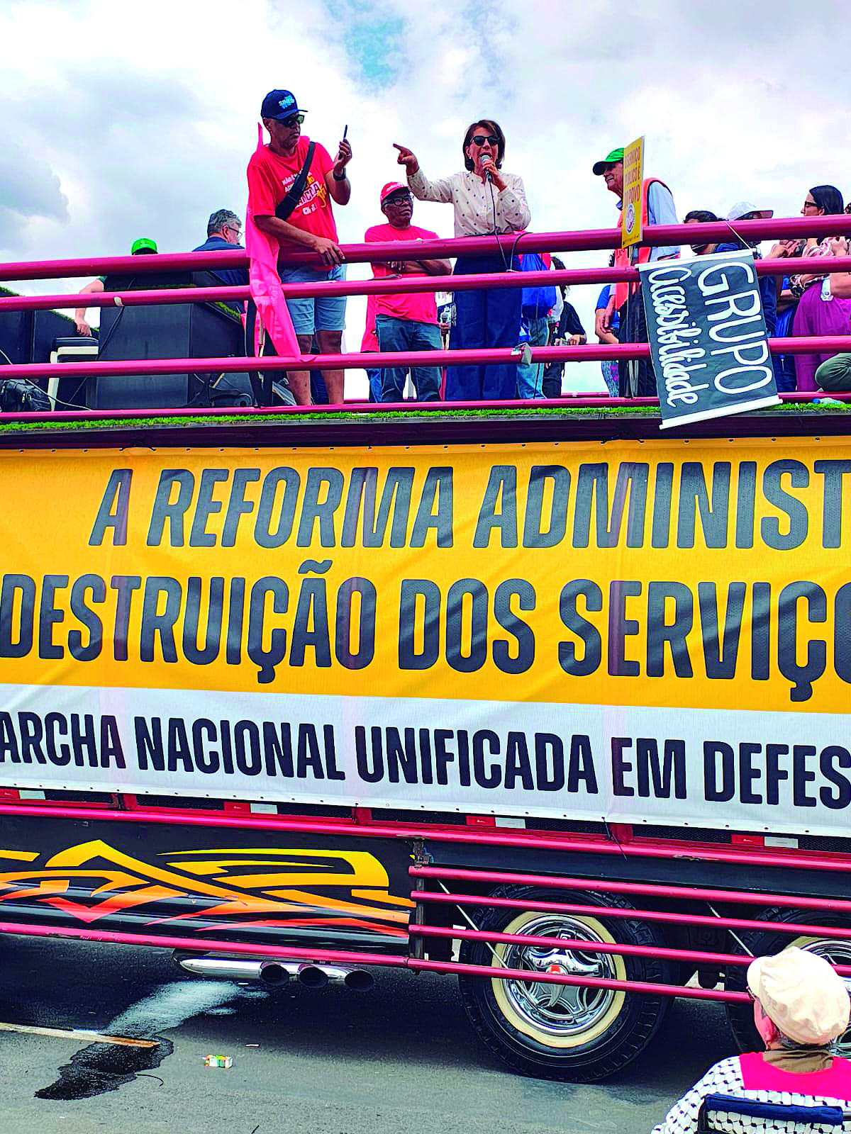 “Por isso, estamos em Brasília, nesta Marcha que tem o objetivo de defender os serviços públicos e os direitos dos servidores, que estão ameaçados pelas mudanças propostas na PEC. A reforma, se aprovada, irá fragilizar carreiras essenciais, reduzir a qualidade do atendimento à população e ampliar o espaço para indicações políticas em cargos públicos”, completa Bebel.