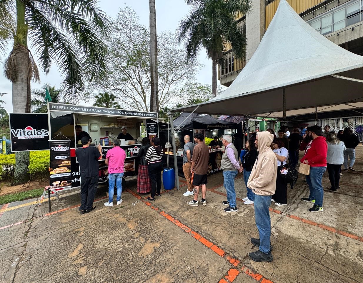 O público pôde aproveitar uma variedade de food trucks, com opções que incluíram lanches, espetinhos, caldo de cana, pastéis, churros, milho verde e brigadeiros, garantindo diversidade gastronômica para todos os gostos.