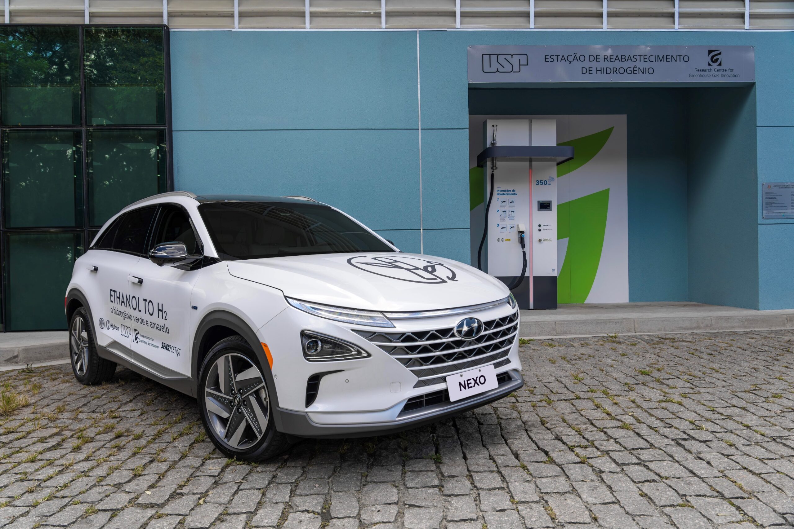 Em fevereiro deste ano, essa unidade do SUV Hyundai Nexo começou a operar em testes com a Universidade de São Paulo (USP), que coordena as pesquisas da primeira planta piloto de hidrogênio renovável a partir de etanol do mundo. Com o Nexo, o projeto poderá avaliar a adequabilidade do hidrogênio produzido a partir do etanol em aplicação em veículos de passeio com longa autonomia e operação em rotas variadas, fator que amplia o escopo dos testes para além do transporte público.