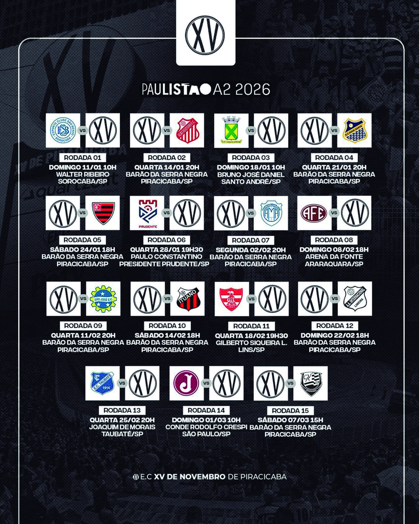O Campeonato Paulista da Série A2 é conhecido pelo alto grau de equilíbrio e dificuldade, e cada ponto conquistado fora de casa pode ser decisivo ao longo da temporada. Para o torcedor quinzista, a expectativa é de um início positivo e de uma campanha consistente em 2026, ano em que o XV de Piracicaba também disputará o Campeonato Brasileiro da Série D e a Copa Paulista, competição da qual é o atual campeão.