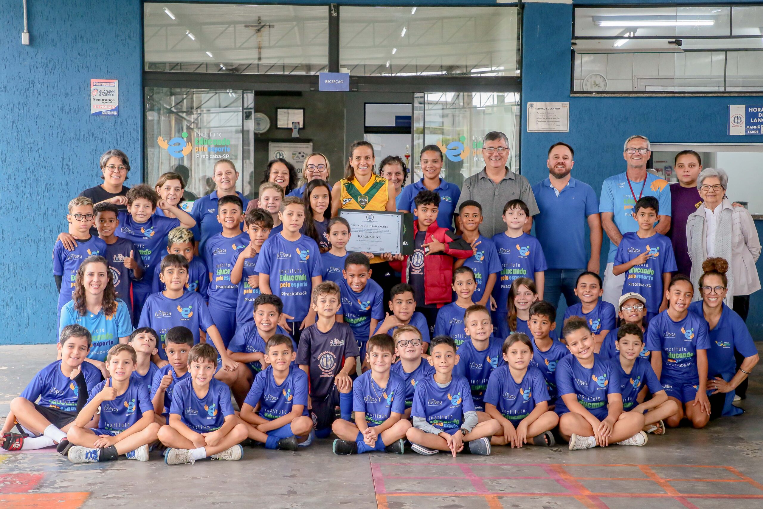 Durante a cerimônia, Karol falou sobre o funcionamento das turmas do Instituto Educando e explicou seu papel no projeto, que utiliza o esporte como ferramenta de formação, convivência e desenvolvimento de crianças e adolescentes. Funcionários da instituição relataram a relação próxima de Karol com os alunos e destacaram o vínculo construído com as crianças ao longo das atividades desenvolvidas no local.