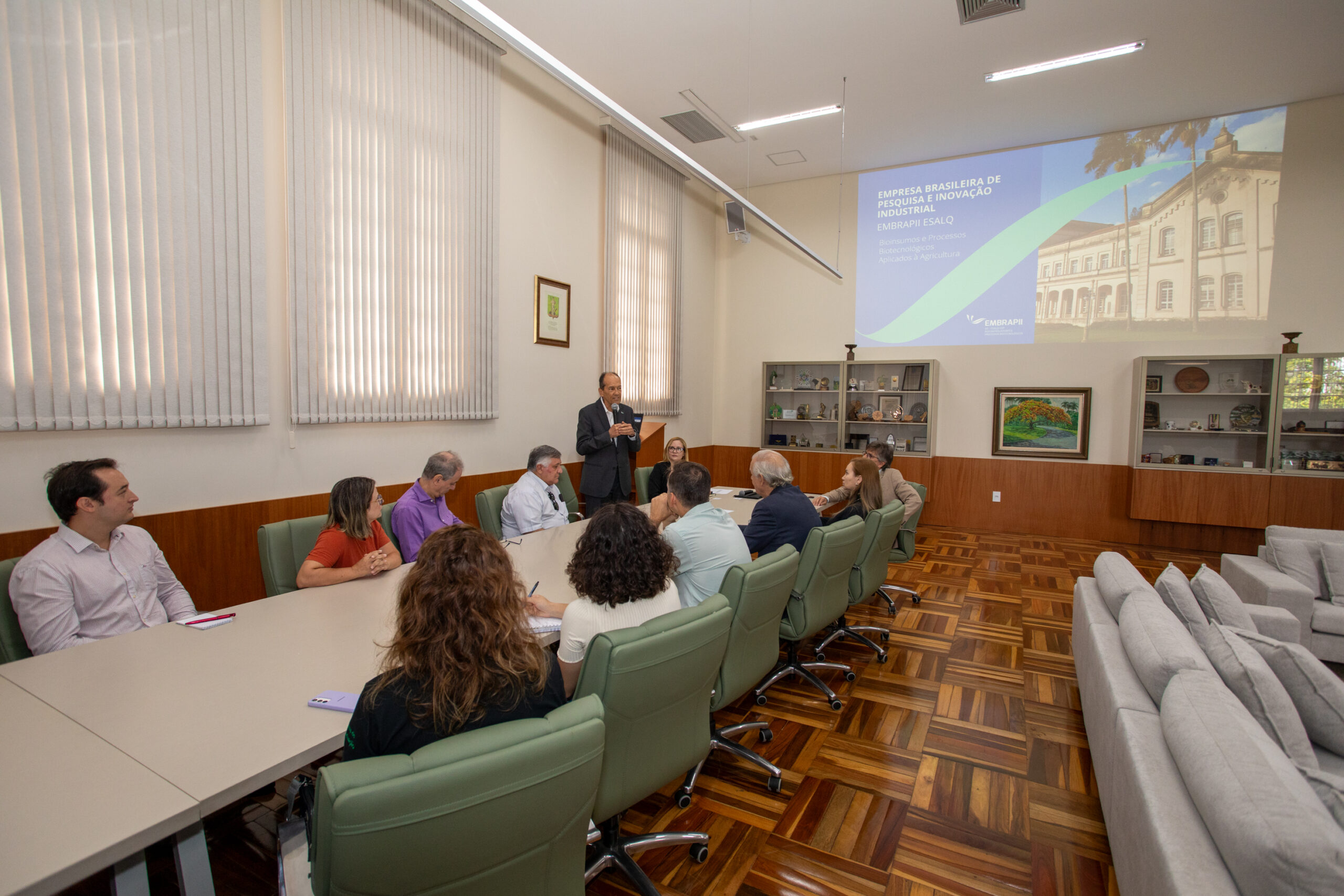 Os visitantes foram recepcionados no Gabinete da Diretoria da Esalq, pela diretora da instituição, Profa. Thais Vieira. Logo após, na Sala Centenário, acompanharam as palavras do presidente da Embrapii, Alvaro Prata, e do coordenador da Embrapii-Esalq, Prof. Italo Delalibera Junior, do Depto. de Entomologia e Acarologia. Encerrando a visita, os participantes fizeram um tour pelo Campus Luiz de Queiroz.