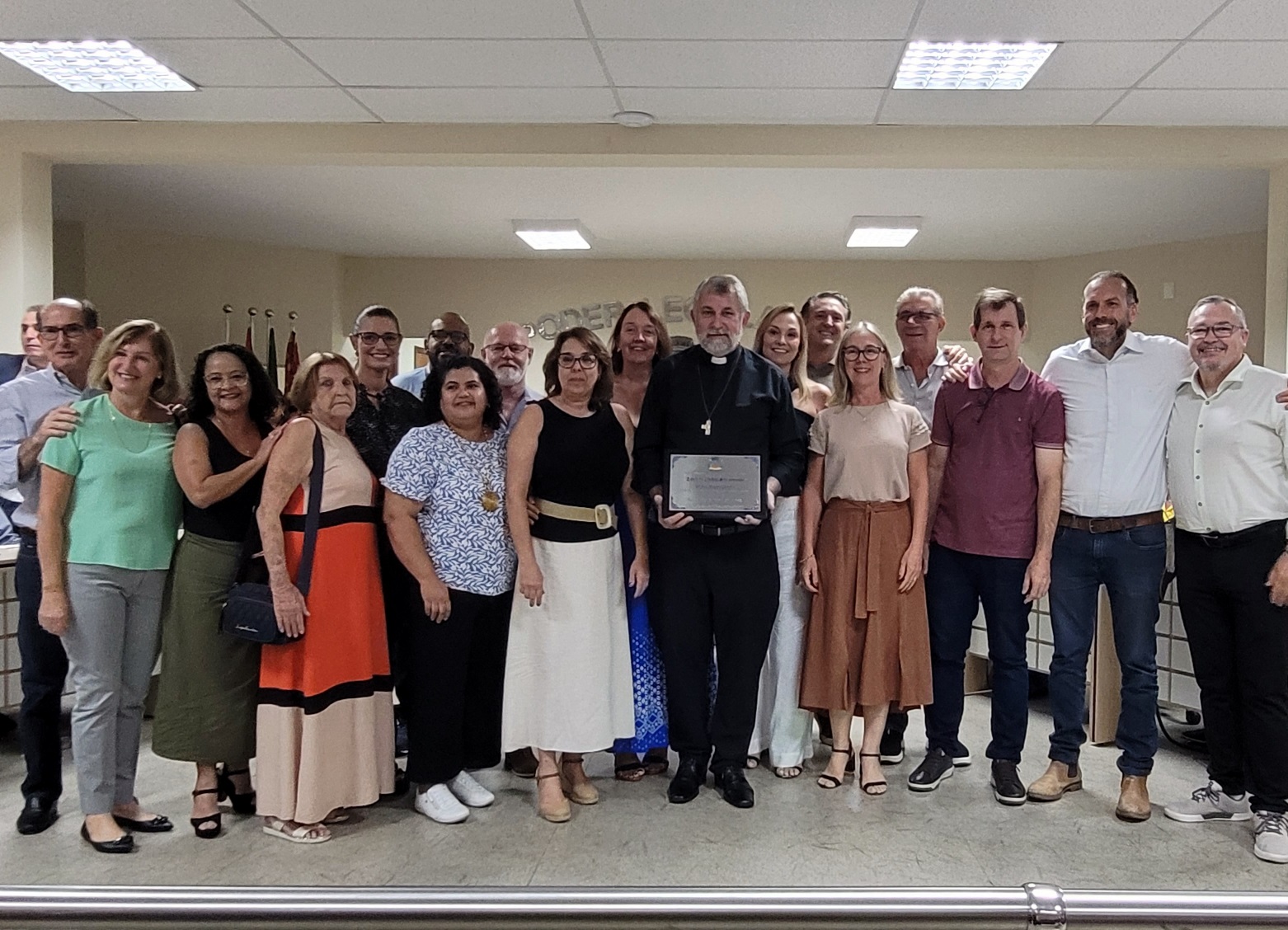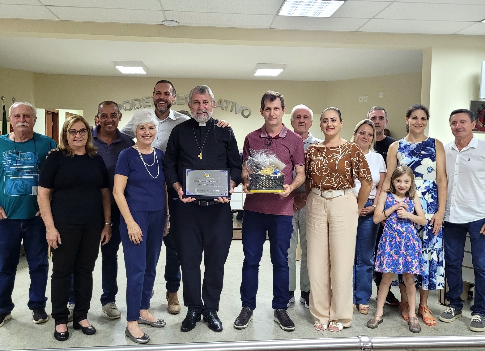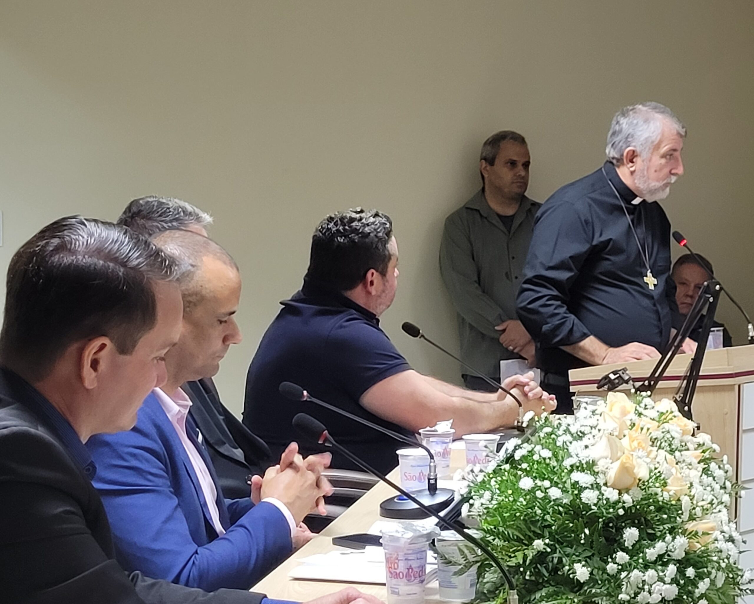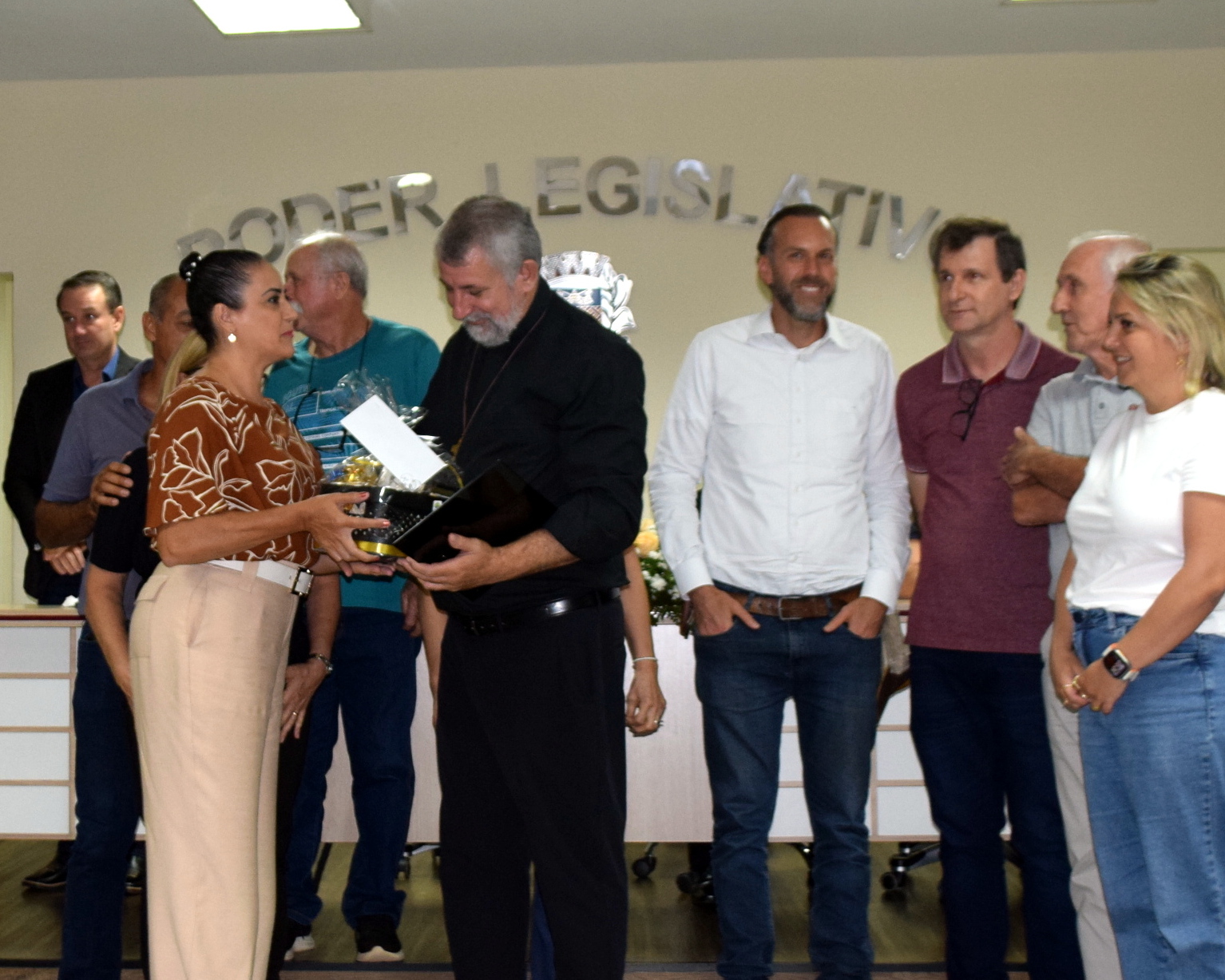 A cerimônia reuniu autoridades e representantes da comunidade católica, entre eles o padre Aguinaldo Rogério dos Santos, representando Dom Devair Araújo da Fonseca, além do prefeito Thiago Silva, do presidente da Câmara, Adriano Vitor, e demais vereadores, que prestigiaram o momento de gratidão e reconhecimento.