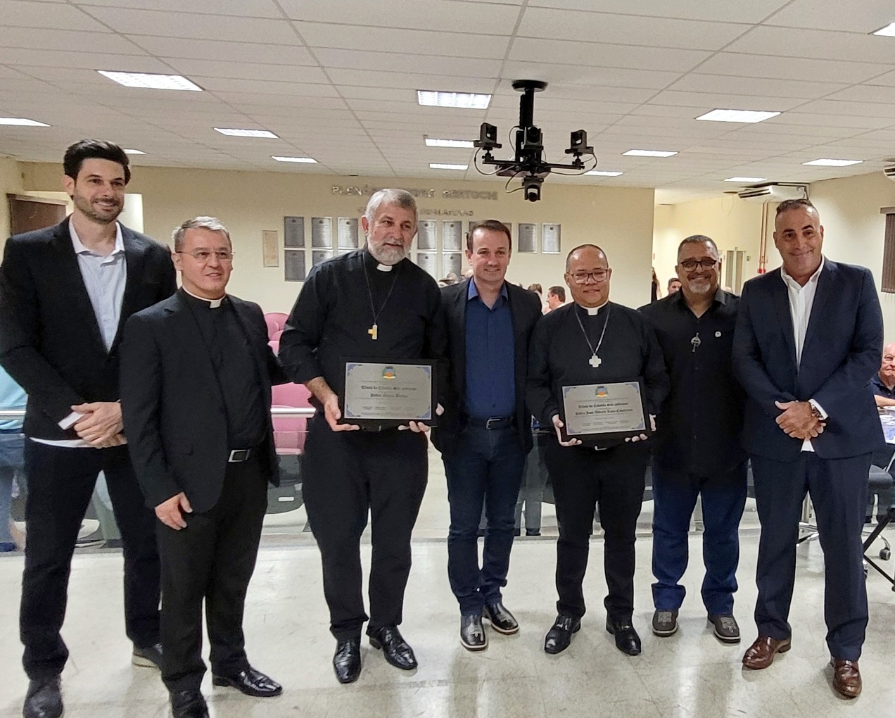 A homenagem, proposta pelos vereadores José Roberto de Moura – Dudu, Du Sorocaba, e pelo suplente Diego Favoretto, destacou a relevante atuação pastoral e o compromisso dos párocos com a comunidade local.