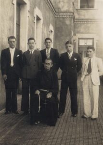 Foto emprestada pelo saudoso artista plástico Eugênio Nardin. Foi tirada em 11 de julho de 1939 no Seminário Seráfico São Fidelis, em Piracicaba. Aparecem nela David Furlan, Waldemar Arana, Homero Scudeller, Eugênio Nardin e Aurelio Brossi, todos juntos ao mestre …