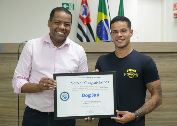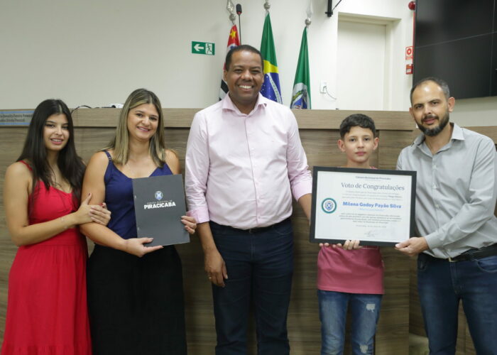 O vereador Thiago Ribeiro (PRD) reconheceu a empresa Milena Lanchonete com voto de congratulações, proposto no requerimento 524/2024. A homenagem foi entregue à família proprietária do negócio em ato solene no plenário da Câmara, na tarde desta quinta-feira (23). Fundada …