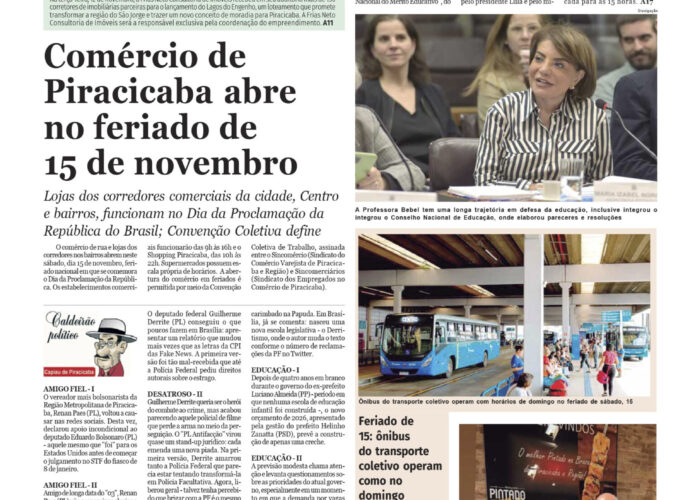 CLIQUE AQUI PARA LER O PDF https://www.atribunapiracicabana.com.br/wp-content/uploads/2025/11/A-Tribuna-Piracicabana-–-Edicao-13794-18-paginas-–-Sexta-feira-14-11-25.pdf